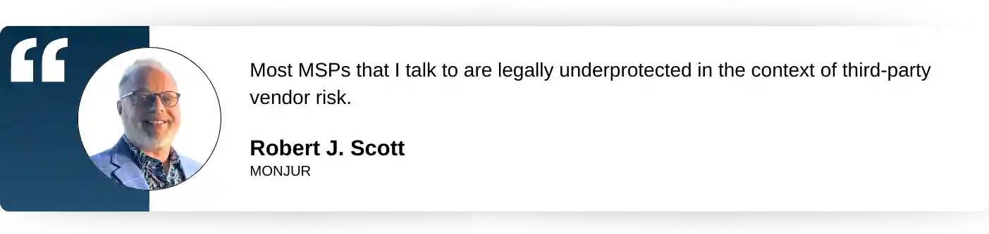 MSPs depend on vendors that handle sensitive data, including cloud providers and cybersecurity firms. When these vendors miss compliance requirements (like GDPR or HIPAA), MSPs face regulatory penalties.